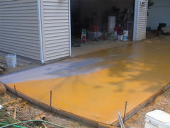 WE ARE HALFWAY THERE. YOU CAN SEE THE COLOR ON THE FIRST SLAB COMING THRU DUE TO A HEAVY DOWNPOUR THE NIGHT BEFORE